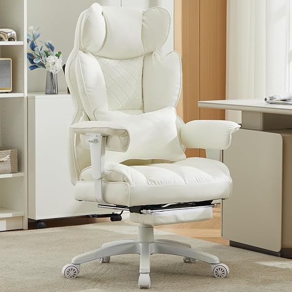 【送料無料】SKYE ゲーミングチェア 広々座面 PUレザー&低反発クッション|135°リクライニング&ランバーサポート|180kg耐荷重 デスクチェア オフィスチェア 在宅勤務 社長椅子(PUレザー, ホワイト)
