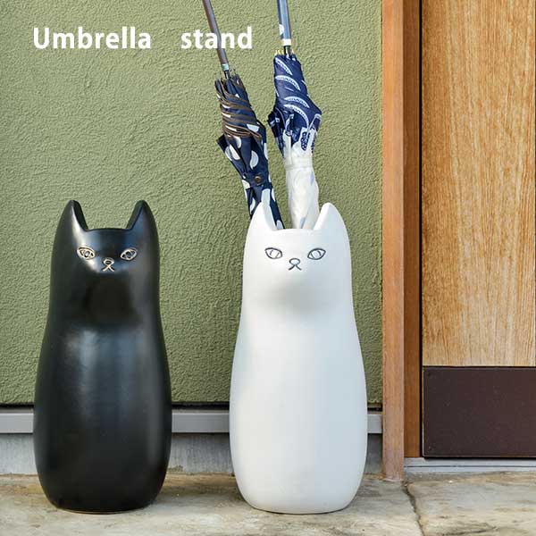 傘立て おしゃれ 猫 大 陶器 屋外 北欧 玄関 ねこ ネコ アンブレラスタンド CLY-12 WH/BK