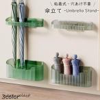 傘立て 傘掛け 傘入れ 折り畳み傘 長傘 かさ収納 壁面収納 壁掛け テープ 粘着式 貼り付け 穴あけ不要 水受けトレイ 半透明 クリア 玄関 屋内