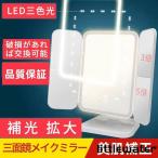 女優ミラー 卓上ミラー 三面鏡 三色調光 LED おしゃれ かわいい 折りたたみ 化粧鏡 メイクミラー 角度調整可能