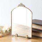 卓上ミラー 真鍮 アンティーク ゴールド 卓上鏡 おしゃれ アーチ型 化粧 メイクミラー 置き型 薄型 レトロな真鍮のスタンド付きミラー