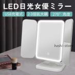 【大特価】女優ミラー 化粧鏡 卓上ミラー LEDライト付き 三面鏡 2倍&3倍拡大鏡 三面鏡 180°回転 52個LED 折りたたみ メイクミラー