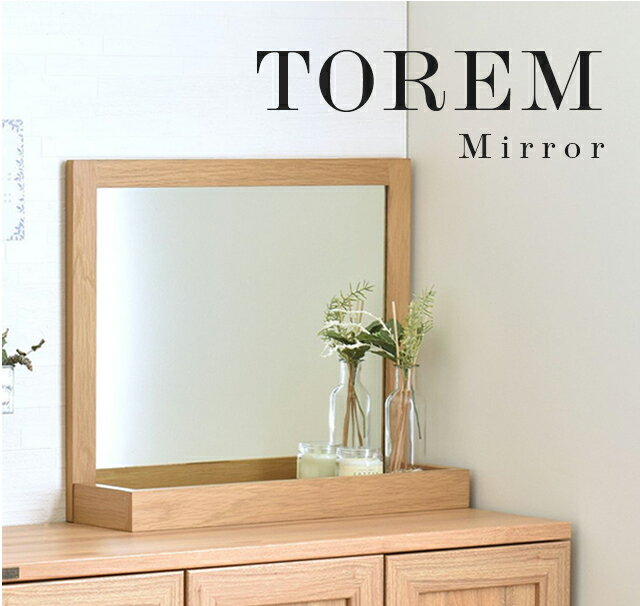 TOREM(トレム)ミラーミラー 鏡 木製 卓上 卓上ミラー 大型 収納 おしゃれ 北欧 ホワイト 白 幅52cm アイボリー オークホワイト オークナチュラル ナチュラル 茶 ブラウン