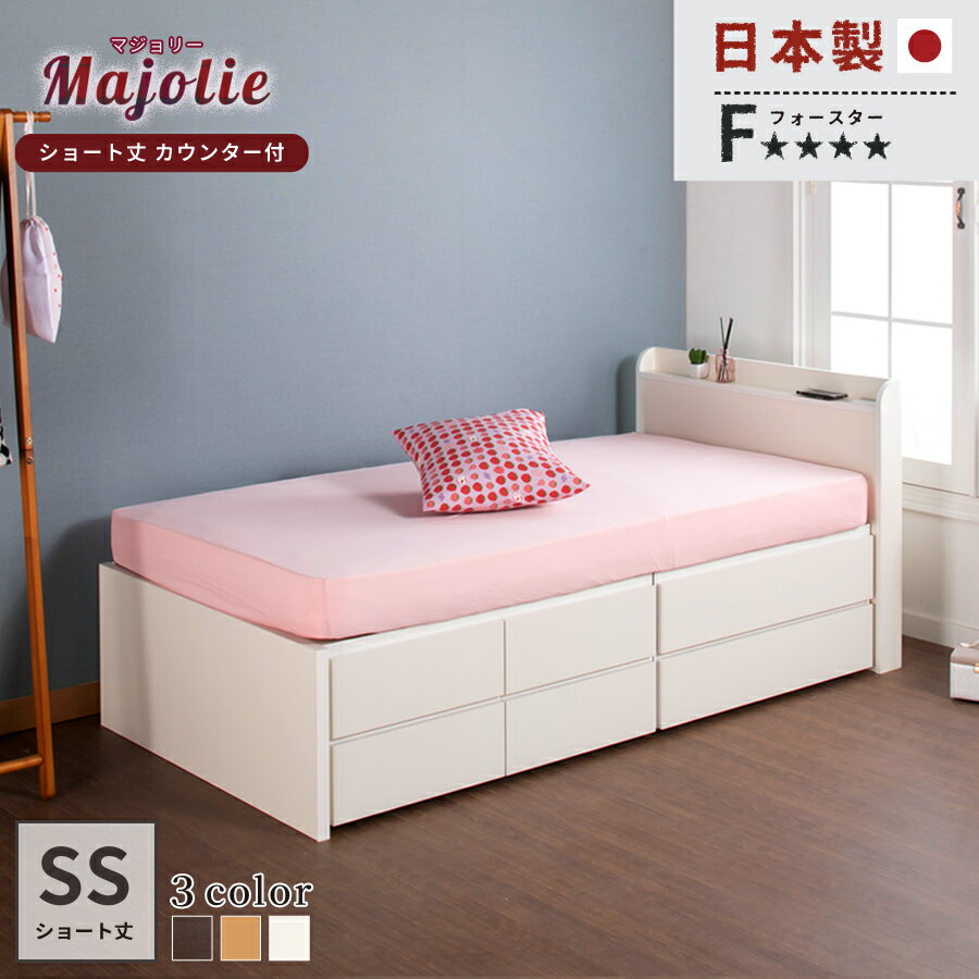 収納ベッド 小さめ セミシングル ショートベッド 収納 チェストベッド 日本製 コンパクトベッド 収納付き スライドレール付き コンセント ベッドフレーム 190cm 長さ 幅83cm 2BOX #14 選べる引出 マジョリー