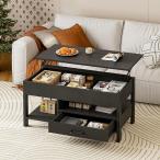 ローテーブル 昇降式 木製 コーヒーテーブル 引き出し付き 収納付き センターテーブル コンパクト MDM(ブラック, 幅90x奥行45)
