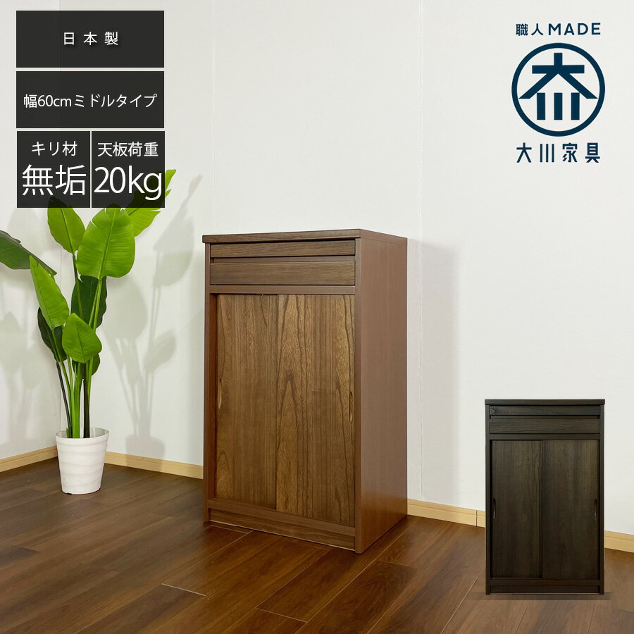 1日限定11%offクーポン 仏壇 おしゃれ オシャレ モダン 台 チェスト タンス 幅60 ミドルチェスト カウンター付き 60幅 桐材 木製 仏壇置き 引き戸 ブラウン 和箪笥 和モダン 引き出し 整理たんす 箪笥 北欧 仏壇箪笥 和風 日本製 完成品 大川家具 アウトレット価格並