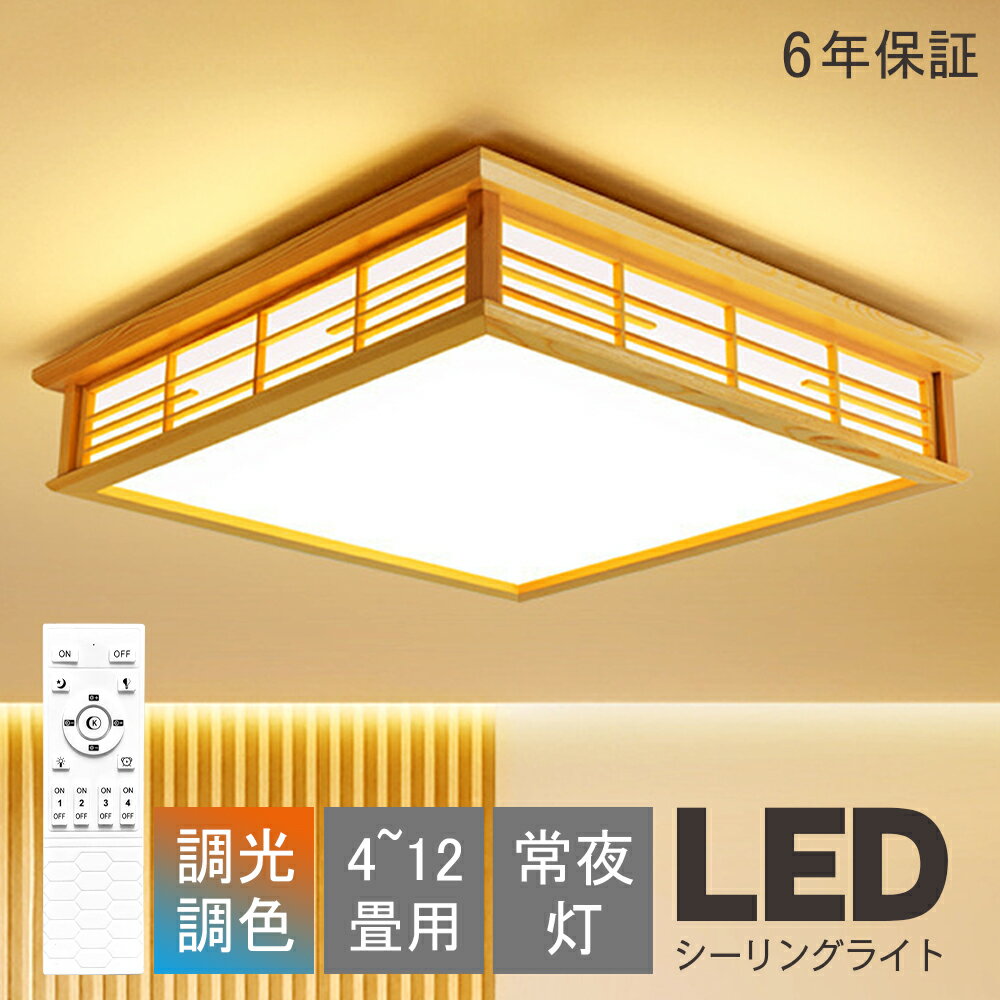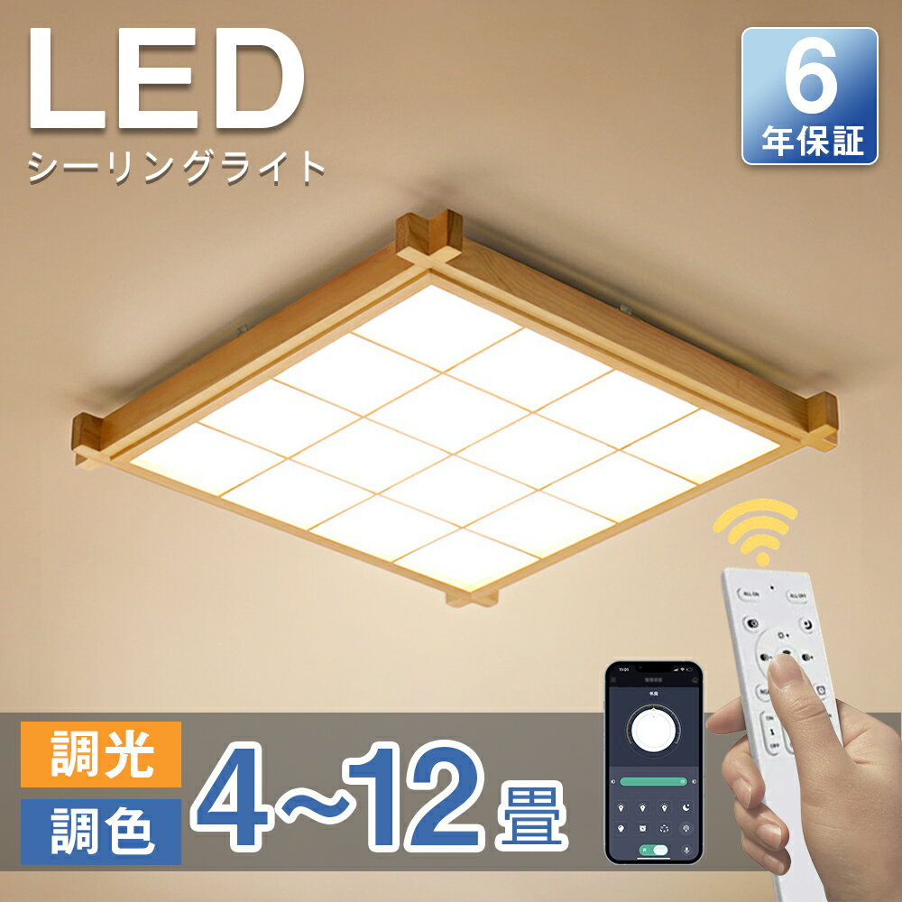 【P5倍&5%OFFクーポン】シーリングライト 和風 和室 和風 照明 天井照明 3色調光 調色 6畳 8畳 10畳 12畳 LEDシーリングライト リモコン 木目 木枠 天然木 北欧 明るい ライト リビング 子供部屋 寝室 和室 洋室 LED照明 インテリア 和風