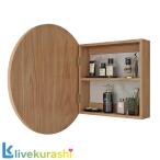 バスルームラウンドミラーキャビネット 無垢材のバスルーム壁掛けミラーボックス 鏡付き照明付き薬棚 内部ミラー付き収納ウォールキャビネット バスルームウォー