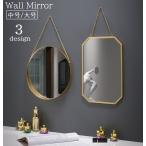ウォールミラー 壁掛けミラー 鏡 かがみ チェーン 丸型 四角 六角形 吊り下げ インテリア アンティーク調 壁面 身だしなみチェック 玄関 寝室 ト