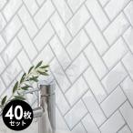 タイル シール ヘリンボーン 40枚 ホワイト 白 メトロ モザイク 壁紙 防水 リメイク シート ウォール ステッカー 簡単 壁面 DIY カット おしゃれ 67074-40-wh