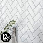 タイル シール ヘリンボーン 12枚 ホワイト 白 メトロ モザイク 壁紙 防水 リメイク シート ウォール ステッカー 簡単 壁面 DIY カット おしゃれ 67074-12-wh