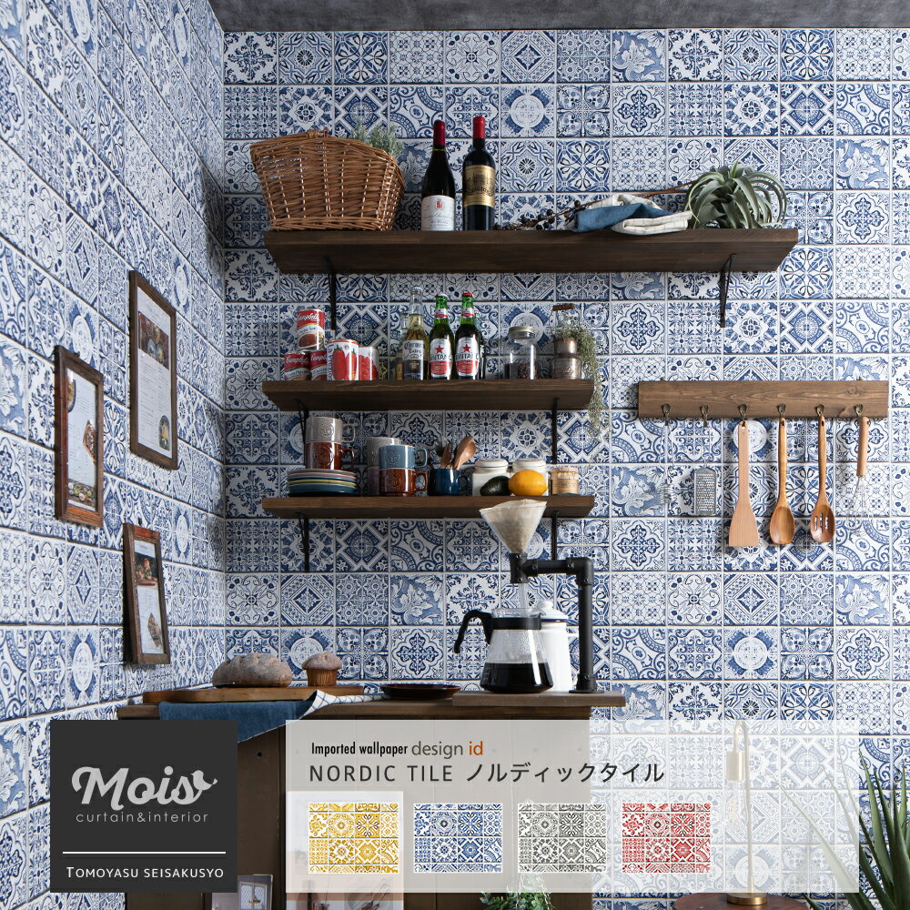 [10%OFF×スーパーセール期間] 壁紙 タイル柄 3D風 DesignID ノルディックタイル 紙製 輸入壁紙 トルコタイル レトロ キッチン 台所 おしゃれ C-F-1