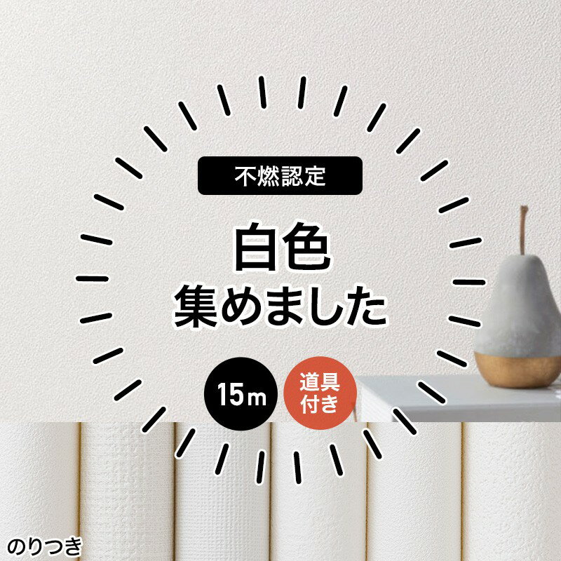 [11%OFF!12/1限定クーポン]壁紙 のり付き 生のり クロス 15m リフォーム おしゃれ オシャレ 不燃 白 白い タイル 石目 塗り壁 安い 自分で 織物調 無地 ふすま ウォールシート ウォールペーパー 貼り替え 壁紙クロス 補修用 白い壁紙 不燃認定 初心者セット 15m JQ