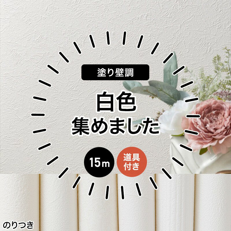 [11%OFF!12/1限定クーポン]壁紙 のり付き 生のり クロス 15m リフォーム おしゃれ オシャレ 白 白い タイル 石目 塗り壁 安い 自分で 織物調 無地 ふすま ウォールシート ウォールペーパー 貼り替え 壁紙クロス 補修用 白い壁紙 石目 塗り壁調 初心者セット 15m JQ