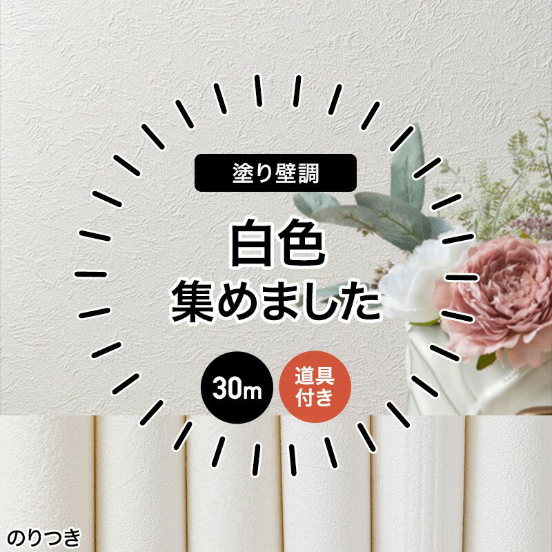 [11%OFF!12/1限定クーポン]壁紙 のり付き 生のり クロス 30m リフォーム おしゃれ オシャレ 白 白い タイル 安い 自分で 織物調 無地 ふすま ウォールシート ウォールペーパー 貼り替え 壁紙クロス 補修用 白い壁紙 織物調 初心者セット 30m JQ