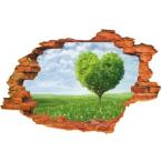 ウォールステッカー 窓 花 インテリア 雑貨 おしゃれ シール 背景 壁紙 壁の穴 レンガ トリックアート ハート キッチン 木 グリーン 自然 公園 癒し系 vr02112
