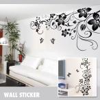 ウォールステッカー 花柄パターン モノトーン 蝶 フラワー 模様 ブラック 北欧 壁紙 シール おしゃれ