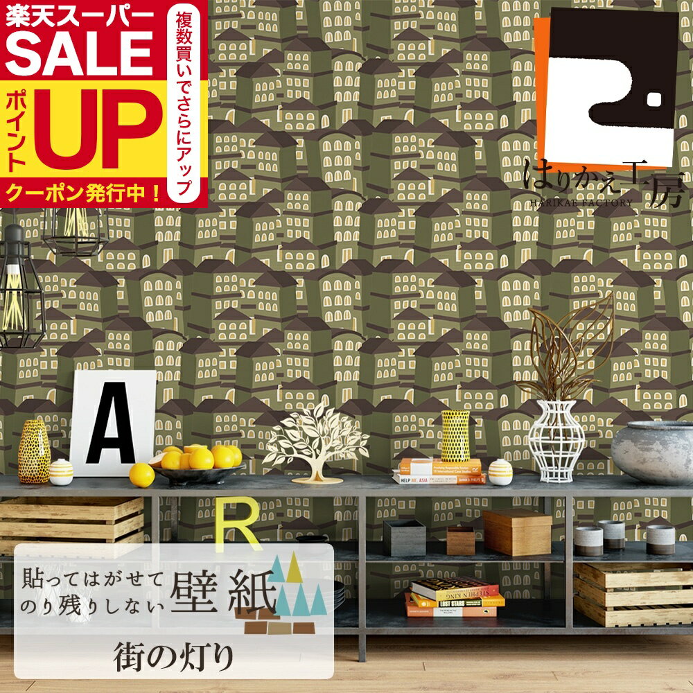 \30%OFF+クーポン/【公式】はがせる壁紙 シール 家並み 45cm×2.5m 大人 日本製 優しい手触り のリ付き はがし剤不要 おしゃれ 店舗改装 在庫わずか