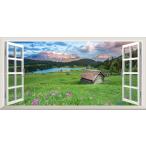 絵画風 壁紙ポスター (はがせるシール式) アルプス山脈の夕焼けと草原の花 森林 湖 【窓仕様】 キャラクロ ALPS-008MS1(パノラマS版 1152mm×576mm)<日本製>