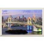 絵画風 壁紙ポスター -窓の景色- 夕暮れのレインボーブリッジ & 東京タワー 夜景 東京港連絡橋 【扉なし窓仕様】 RBB-005NW1 (ワイド版 901mm×585mm)