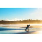 絵画風 壁紙ポスター (はがせるシール式) 幻想的な夜明けの渚とサーファーガール サーフィン キャラクロ SFN-043W1(ワイド版 921mm×576mm)<日本製>