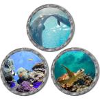 3D ウォールステッカー イルカ ウミガメ 熱帯魚 壁紙 3枚セット 約29cm(ブルー)