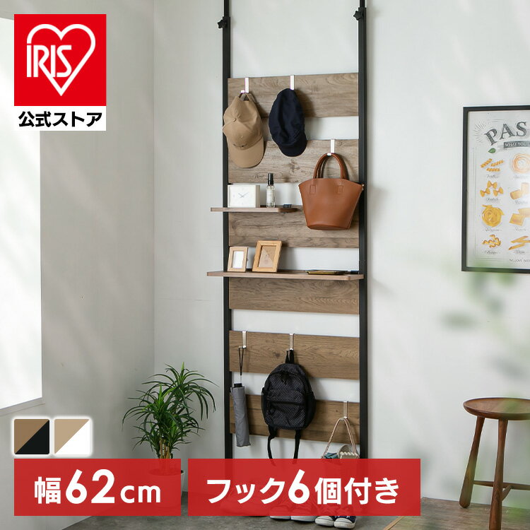 \レビュー記入でクーポンプレゼント/ 突っ張り棚 ラック 棚付き アイリスオーヤマ送料無料 突っ張り ラック フック収納 壁面家具 壁面収納 収納家具 キッチンラック キッチン リビング 収納 壁面 食器棚 ウッドウォールラック ブラック ホワイト WLR-T66 [2512SE]