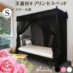 シングルベッド フレームのみ 天蓋付き 姫系 プリンセスベッド お姫様ベッド 女の子 アイアンベッド 天蓋付きベット カーテン付き レースカーテン ピンク ホワイト ブラック 白 黒 かわいい おしゃれ エレガント