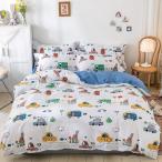 【並行輸入品】子供用車用掛け布団カバーセット クイーンサイズ コットン100% 車 バスプリント 寝具セット 男の子用 女の子用 ソフト 通気性