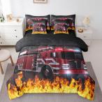 【並行輸入品】子供用 消防車 寝具 掛け布団セット 男の子 女の子 漫画 消防士 車 ベッド バッグ入り レッド ハニカム 六角形寝具セット 装