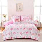 【並行輸入品】AMBERSPACE クイーンサイズ 子供用掛け布団セット レッドボウ寝具セット 女の子用 7点 オールシーズン 軽量 快適 ベッ