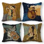 【並行輸入品】抽象的なリネンスローピローケース4枚セット 18×18インチ 面白い猫の枕、子供部屋の装飾、猫のテーマの部屋の装飾、ソファ、ソファ