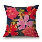 【並行輸入品】カラフルなハイビスカスの花と葉 装飾用クッションカバー レッド トロピカル 装飾 ソファ ベッドルーム 黄麻布 枕カバー 男性/女