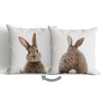 【並行輸入品】グレー うさぎの尾 イースターバニー フィードパターン スローピローカバー 18インチ x 18インチ リバーシブル 装飾枕カバー