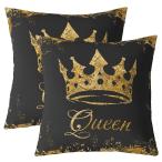【並行輸入品】Feelyou クラウン クイーン スロー 枕カバー 40.5 x 18インチ、ゴールデンクラウン クイーン正方形クッションカバー
