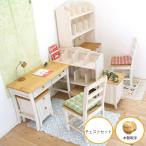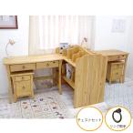 無垢木製 カントリー調 かわいい ツインデスクバレンシア本棚付きデスク+ファイルチェストF02 ナチュラル色 木製取手