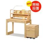 開梱設置 学習机 デスク 105デスク アルダー無垢材 上棚、チェストワゴン、LEDライト付き 北欧風 ワークデスク