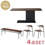 EVAN ダイニングセット ウォールナット テーブル幅160cm チェア2脚 ベンチセット ダイニングテーブル ダイニングチェア リビング テーブル 代引不可