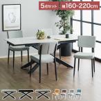 ダイニングセット ダイニングテーブル セラミック エクステンション 幅160~220 ×奥行90×高さ72cm 4人掛け ファブリック ダイニングチェア 4個入り 代引不可