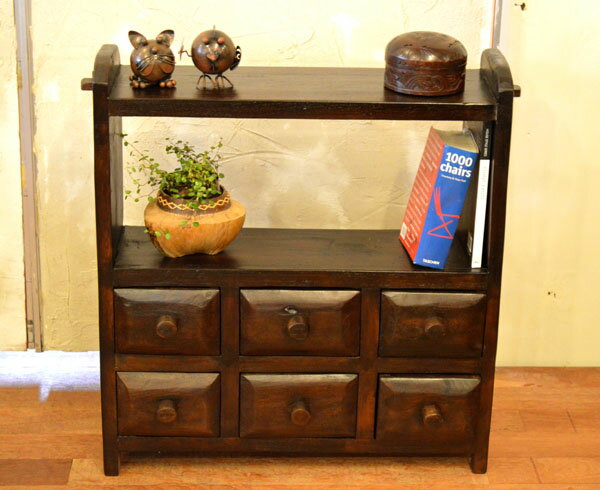 ★レビューで特典★アジアン家具 収納家具 キャビネット マガジンラック ウッドラック 棚 ディスプレイラック 飾り棚 小物収納 バリ ♪ARチークの根 6引き出しラック(DB)♪ おしゃれ デザイン家具 リビング ダイニング