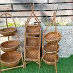 ★レビューで特典★収納家具 ディスプレイ バスケット プランター 小物入れ アジアン家具 バリ ♪バリ島の3段バスケット(折りたたみ式)♪ 花台 ラタン リゾート トライバル ホテルライク インテリア ナチュラル カフェ