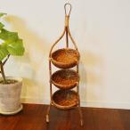 アジアン家具 木製 バリ ♪ロンボク島ラタンバスケット棚(筒形3段Sサイズ)♪ おしゃれ バスケットラック オープンラック