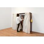 ハンガーラック ワードローブ 洋服掛け カーテン付き おしゃれ 木製 伸縮 クローゼット 衣類収納 幅115-195cm