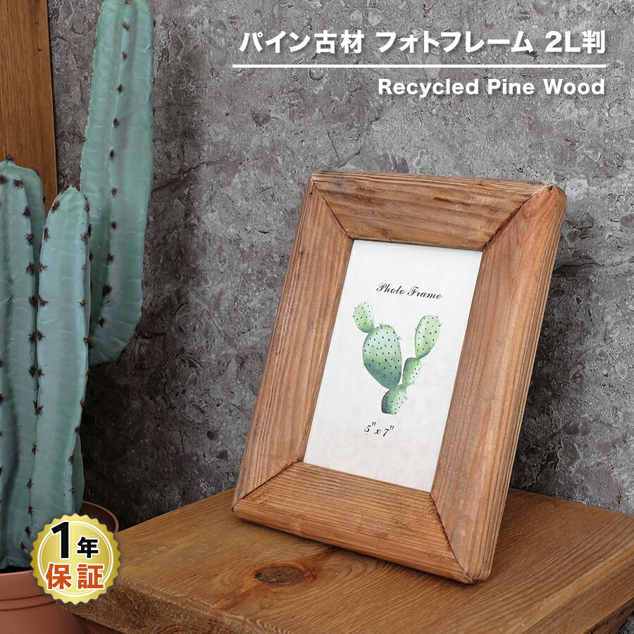 【古材家具】リサイクルパイン フォトフレーム 2L判 木製 フォトスタンド 写真立て 押し花 ポストカード アートポスター アンティーク インダストリアル ガラス ディスプレイ お洒落 おしゃれ リビング ダイニング 無垢材 モダン カフェ 北欧 西海岸 1年保証