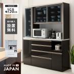 食器棚 レンジ台 キッチンボード 完成品 幅150cm 引き戸 木製 収納 引き出し付き ホワイト 白 ブラック 黒