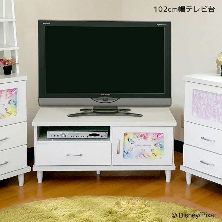 【全商品に使える12%offクーポンあり!!】 テレビ台 テレビボード 幅100 おしゃれ 木製 引出し チェスト ローボード コンパクト 可愛い 収納 ミッキー 引出し 白 小物入れ 100 引き出し収納 ホワイト 脚付き 開き扉収納 ディズニー プリンセス アートパネル
