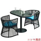 ラタン調ガーデンテーブルセット3点セット (テーブル×1 チェア×2) 高級人工ラタン ガーデンチェア テーブル ホテル カフェ ベランダ テラス 屋外家具 高級