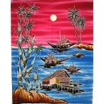 現代アートバティック縦M『バンブーと海、帆船』 青 アジアン雑貨 バリ雑貨 バティック布 エスニック