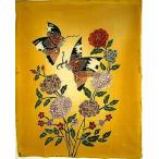 現代アートバティック 縦 M 花と2羽の蝶々 黄 アジアン雑貨 バリ雑貨 バティック布 エスニック