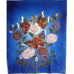 現代アートバティック 縦 M 花と2羽の蝶々 ブルー アジアン雑貨 バリ雑貨 バティック布 エスニック